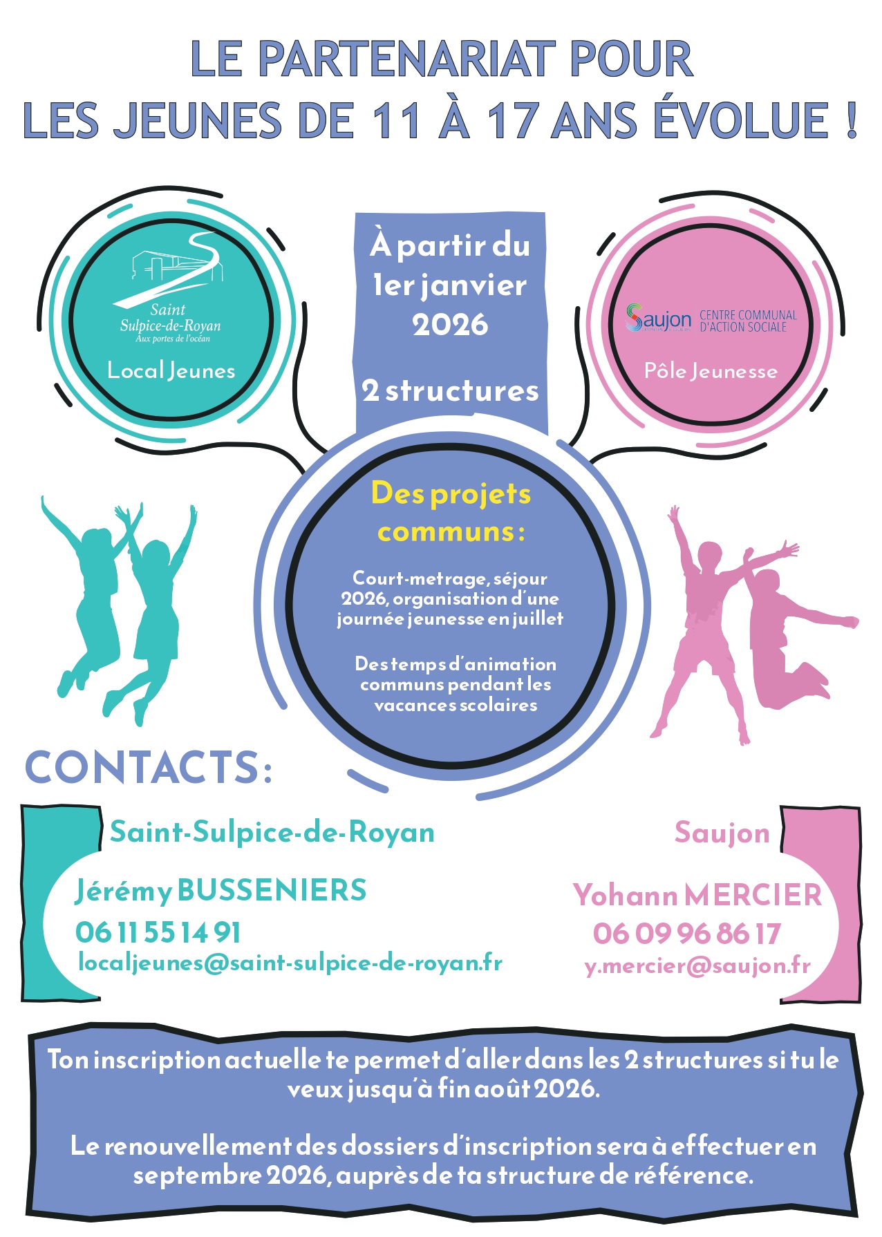 Tu as entre 11 et 17 ans ? Tu as envie de monter un projet, de rencontrer d’autres jeunes, de partager des activités…. Alors n’hésite pas à venir nous rencontrer au local jeunes.