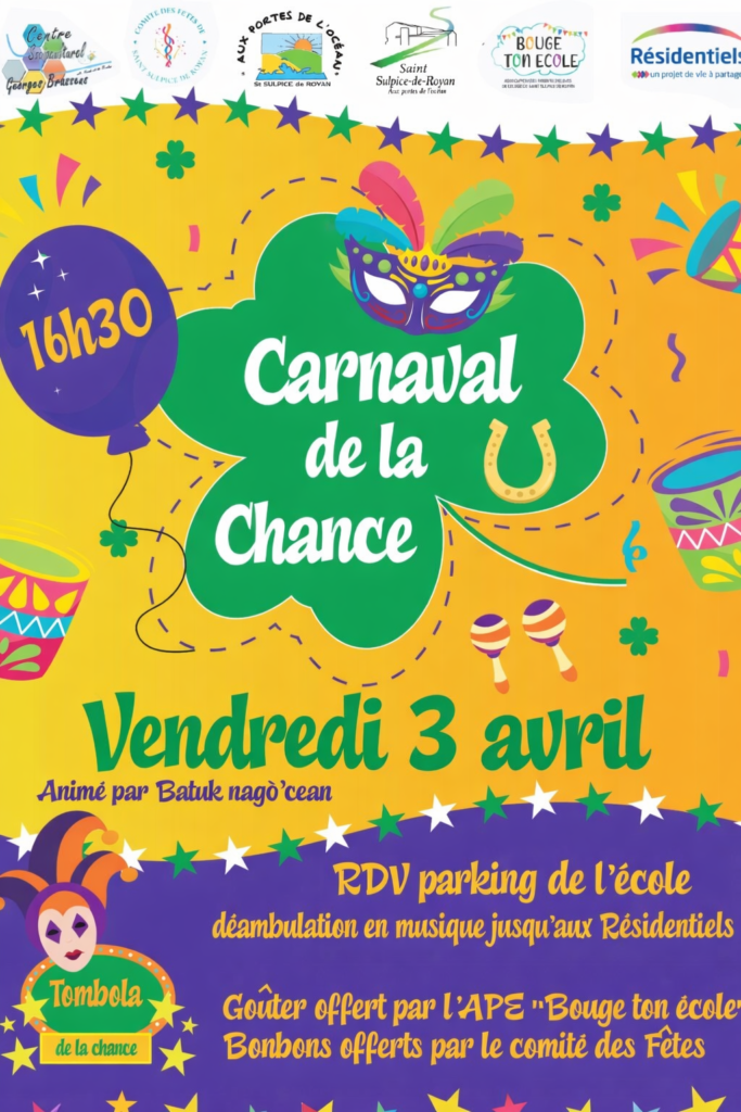 Report du carnavalPar Bastien PETIT / 12 mars 2026 En raison des conditions météorologiques, le carnaval est reporté au 03 avril 2026